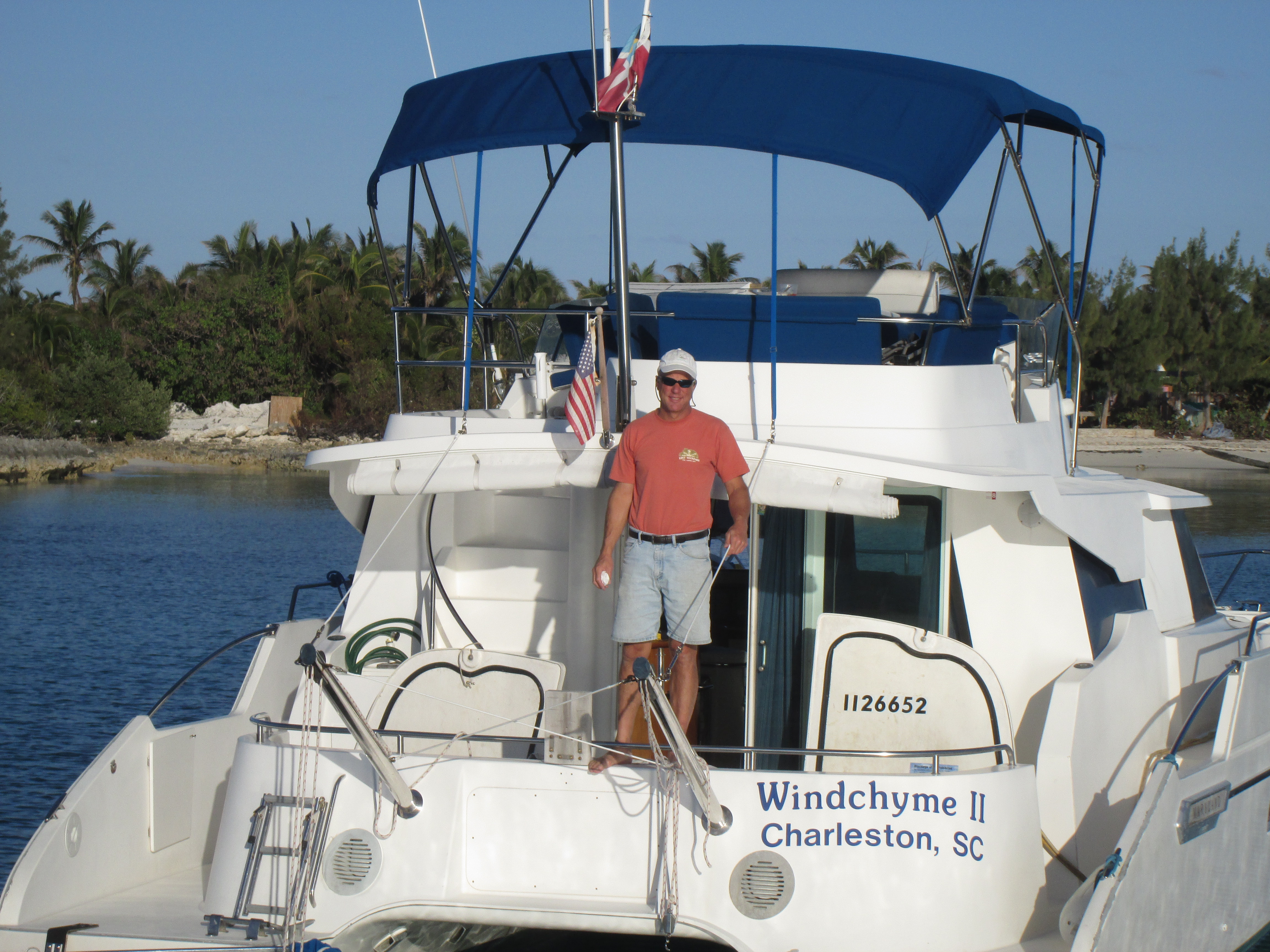 Mid-tide was about 1345 hours that day. However, even though the charts indicated we could get through at this time, we could not be sure as we have not gone through this channel at mid-tide before. The seabed may have changed since the charts were produced. The large powerboat Waylaid was also headed back to Hopetown, so Waylaid, having a shallower draft, volunteered to go through the channel ahead of us and closely monitor the soundings to see if we could make .it through.