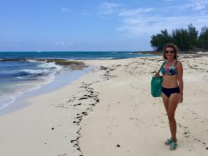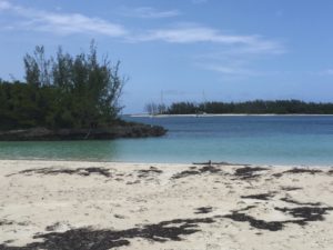 Treasure Cay we sailed to a cove on the north east side of Manjack Cay and anchored out for 3 days. Manjack Cay is a very beautiful anchorage adjacent to the ocean. We spent a lot of time walking the beach and shelling.